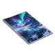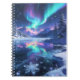 Beautiful spiral notebook featuring a dreamy winter lake scene with glowing northern lights, snowy mountains, sparkling ice, and a magical reflection across the water. Perfect for journalling, notes, writing, school, and anyone who loves celestial winter landscapes and dreamy stationery. A peaceful and enchanting notebook design full of snow, light, and aurora beauty.