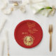 Golden paper-cut of a Rabbit into a circle + golden Chinese Auspicious clouds (line graphic). Design on paper plate with red background and texts: 2023, The Year of The Rabbit. Matching greeting card, holiday postcard, invitation, craft supplies, party supplies and more... Perfect for Chinese New Year of the Rabbit 2023 or birthday (people born in Rabbit Year).