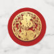 Golden paper-cut of a Rabbit into a circle + golden Chinese Auspicious clouds (line graphic). Design on table confetti with red background and texts: 2023, The Year of The Rabbit. Matching greeting card, holiday postcard, invitation, craft supplies, party supplies and more... Perfect for Chinese New Year of the Rabbit 2023 or birthday (people born in Rabbit Year).