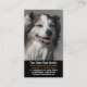 This eye catching pet business card features a cute close up photograph of a Black Tri purebred australian shepherd dog. She sits with her head slightly tilted with a curious expression on her face. Beautiful colouring, with a thick white vest, wide blaze and rich brown face markings. Both sides are fully customisable with your own professional or personal information. Great choice also for dog groomers, trainers, agility clubs, herding events etc.