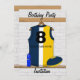 Blue Yellow and white aussie rules football jersey hanging in a changing room fully customisable with your own name and number. on the reverse just change the details to your own party details to create unique soccer birthday party invitations. Great gift for any aussie rules footy player, or aussie rules football fan. We can make this product in any jersey colour combination just contact us through the giftsbonanza store prior to purchase. sgb01