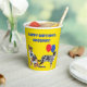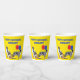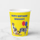 Create some doggone awesome personalised party supplies. These paper cups feature realistic style illustrations of Australian Shepherd dogs along with colourful party balloons against a bright yellow background. Your personalised message appears in royal blue lettering.