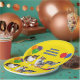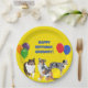 Create some doggone awesome personalised party supplies. These paper plates feature realistic style illustrations of Australian Shepherd dogs along with colourful party balloons against a bright yellow background. Your personalised message appears in royal blue lettering.