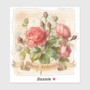 Pink Rose Roses Watercolor Vintage Customizable Heart Sticker