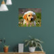 This adorable little guy is everyone's favourite Labrador puppy with his golden soft fur and sweet expression. He's sitting in a field of pink Iceland Poppies. He is well loved by his human, Michio, and everyone who meets him.