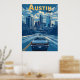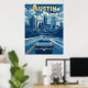 Capture the iconic Congress Avenue Bridge in Austin, Texas with this poster reminiscent of vintage travel posters. This unique design brings the energy of the city to life. It's a perfect way to share a piece of Austin with your loved ones.