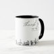 Austin skyline coffee mug favour gift with "thank you" script. The design showcases a stunning sketch with the ability to customise your names and exact location. Enter the Zazzle design tool for additional customisations.