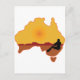 A stylised map of Australia with a silhouette of a rancher or cowboy sitting on a fence looking at the sunset