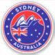 Badge of Sydney with flag of Australia colours and Sydney Opera House, rounded shape