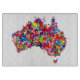A map of the Australia made up from colorful butterfly silhouettes on a white background