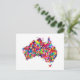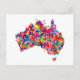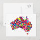 A map of the Australia made up from colourful butterfly silhouettes on a white background