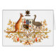 The coat of arms of Australia is the official symbol of Australia. The shield is the focal point of the coat of arms, contained within is the badge of each Australian state. The Red Kangaroo and Emu that support the shield are the unofficial animal emblems of the nation. In the background is wreath of Golden Wattle, the official national floral emblem.