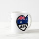 A cool, cartoon style heart design with the flag and the 3 letter country code of the country.