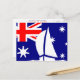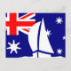 Australian Flag Sailing Boat/ Yacht Australia Nautical Postcard. Sailing yacht silhouette and Australian flag with Union Jack, seven pointed star and Southern Cross stars constellation nautical postcard.