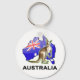 Australia is the smallest continent; between the South Pacific and the Indian Ocean. A kangaroo is superimposed on the flag filled map of Australia.