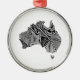 This decorative drawing was done in pen, ink, and graphite. It features an intricate pattern of repeated lines, shapes, stripes, leaves, pearl beads, parquet, spots, mushroom shapes, bamboo, floral patterns, and more, all interconnected and combined to form a map of Australia, including Tasmania, the island "dripping" off the southern coast of Victoria.