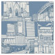 Australian toile de jouy, originally drawn in ink. Includes Sydney harbour Opera house and Luna Park, Perth Temple, Melbourne skyline, Adelaide Chinatown, Townsville Maritime Museum, Wollongong lighthouse. heart reef, Bondi beach.