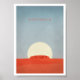 This is a modern and minimalist style travel poster of Australia. The huge sun sets slowly behind the Ayers Rock/Uluru.