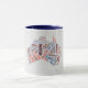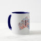 Stylish coffee mug features Australia continent silhouette with top Australia city names in various fonts and colours