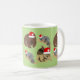 Australian baby animals wearing Santa hats Christmas mug. Features baby bilbies, wombats and sugar gliders.