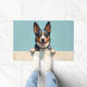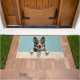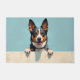 The muted sky blue background adds a fresh and calming look, perfect for entryway decor. Designed with extra space at the top and bottom, it allows easy personalisation with names, welcome text, or custom messages—making it ideal for unique dog-themed doormats and thoughtful gifts.
