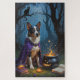 Step into a magical Halloween night with this whimsical oil painting featuring an adorable pup dressed in a mini witch cloak, seated beside a bubbling cauldron in a shadowy forest. Surrounded by glowing potions, old spellbooks, and twinkling magical sparks, the scene is filled with mystery and charm. Rich painterly textures and deep Halloween hues create a cosy, enchanted vibe perfect for spooky season lovers.