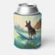Australian Kelpie Beach Surfing Painting Can Cooler
