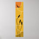 Abstract Australian Landscape featuring flaura and bird life on a background of orange cirlces representing the land, horizon and sky.