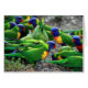 These colourful rainbow hue birds are rainbow lorikeets and are found wild in Australia. Though they're pretty to look at and beautiful in photos, the noise they make is a bit harsh!