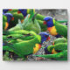 These bright coloured rainbow lorikeet birds are bright green, blue, red, and yellow. I took this photo of a large group of them feeding on the ground in Victoria Australia near Cape Otway.
