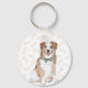 Cute illustration of a dog with a green bow tie and bones pattern background