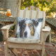 A beautiful Australian Shepard dog in the winter snow on this wonderful throw pillow.
