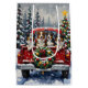 Add intelligent, striking beauty to your holiday season with this stunning Australian Shepherd Christmas design! This festive scene features three colorful, attentive Australian Shepherds sitting contentedly in the back of a classic red pickup truck, nestled in a picturesque snowy winter forest. The vintage truck is adorned with a vibrant Christmas wreath, twinkling with red and gold ornaments and warm, glowing lights. Soft snowflakes gently fall, enhancing the winter wonderland effect. A decorated Christmas tree in the background completes this heartwarming picture, making it an ideal Christmas gift for any Australian Shepherd owner, dog lover, or admirer of festive and beloved dog art. This design perfectly captures the joyful spirit of the holidays.
