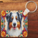 Australian Shepherd Dog Floral Colourful Border Key Ring