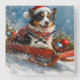 Australian Shepherd Dog in Sledge Chriistmas Square Wall Clock