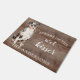 Funny beware of the wet kisser" Australian Shepherd Dog door mat set on a rustic faux background. Visit our shop to view a large assortment of dog breads