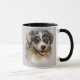 The Australian Shepherd is an intelligent, medium-sized dog of strong herding and guardian instincts. He is also a delightful and loyal companion and a great family dog. He loves to be part of the daily hustle and bustle, and enjoys riding in the vehicle just to be with his beloved master. As a farm dog, he diligently carries out his responsibilities, be they bringing in the stock or finding that stray one that got tangled in the brush. He is easy to train, easy to housebreak, and eager to please. Their coats can be black, blue merle, red merle and red with or without white markings. Their thick coats require weekly brushing. Aussies have been used as seeing-eye dogs, as utility dogs to the physically handicapped, hearing aid dogs, police and narcotics dogs and search and rescue dogs. In the northern areas they have also been used as sled dogs. Many go with their masters as volunteers to children's homes and nursing homes to do therapy work. Truly, the Australian Shepherd is a highly versatile dog. The Aussie (as he is lovingly nicknamed) is a very active dog that needs a great deal of exercise on a daily basis to prevent him from become bored or frustrated and developing destructive habits. Because of their high energy level, combined with high intelligence, Aussies need to be given a "job" to perform, be it shepherding the children, protecting the house, herding livestock or competing in dog events. Although sometimes reserved with strangers, they are “people” dogs that want to always be near their families. The Australian Shepherd is an intelligent, active dog with an even disposition; he is good natured, seldom quarrelsome.