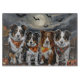 Unleash the spooky spirit with this eerie Halloween design featuring a pack of dogs under a dark, moonlit sky, surrounded by flying bats and glowing pumpkins. Perfect for those who love a touch of frightful fun with their furry friends!