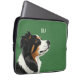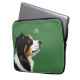 This laptop sleeve has a minimalistic design with a solid green background and an Australian shepherd dog illustration. It is a great design for dog owners and lovers - especially Australian shepherd owners.