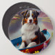 Australian Shepherd on Paddle: A Scenic Adventure 6 Cm Round Badge