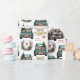 A teal blue pickup truck carries a decorated Holiday tree and gift packages on this cute gift wrapping paper. A tricolor Australian Shepherd Dog wears a Santa Claus hat and looks out from the tailgate. A rustic wooden sign on the back bumper says "Christmas Cheer". Your monogram is enclosed within a pretty pine cone and red berry wreath, and stylised gold text says "Merry Christmas". You may also customise the "from the (Name) section.