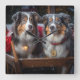 Australian Shepherd Snowy Sleigh Christmas Decor Square Wall Clock
