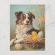 Celebrate Easter with the energetic and intelligent Australian Shepherd in this vintage-style postcard. Featuring the beloved dog surrounded by colourful Easter eggs, blooming spring flowers, and festive seasonal accents, this design is perfect for Australian Shepherd lovers, collectors, and fans of nostalgic holiday art. A heartwarming keepsake to share Easter joy.