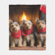 Australian Terrier by the Fireplace Christmas Fleece Blanket