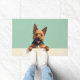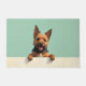The soft mint green background adds a fresh and modern feel, perfect for welcoming home spaces. Designed with extra space at the top and bottom, it allows easy personalization with names, welcome text, or custom messages—making it ideal for unique dog-themed doormats and thoughtful gifts.