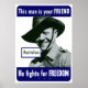 This vintage World War Two poster features a smiling Australian soldier. It declares, "This man is your friend, He fights for freedom". Celebrate American, Australian, and WW2 History with this digitally restored vintage war poster product from The War Is Hell Store.