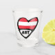 A cool, cartoon style heart design with the flag and the 3 letter country code of the country.