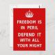 Authentic Freedom Is In Peril Original Red Postcard