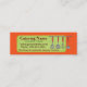 A sharp catering business card designed to showcase your home or commercial catering business. The vivid colours and unusual skinny shape will capture the attention of customers! Be sure to customise the front AND back with your information.