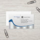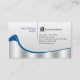 This elegant and striking author business card design features a wave shaped bottom with a chrome silver texture effect as the background. The top section is an off-white background. Both these sections are separated by a blue wavy stroke. Your name and details appear on the top. Perfect for business, administration, serious, minimal, simple, finance, publishing, printing, literature, literary arts, writing, professional themes.